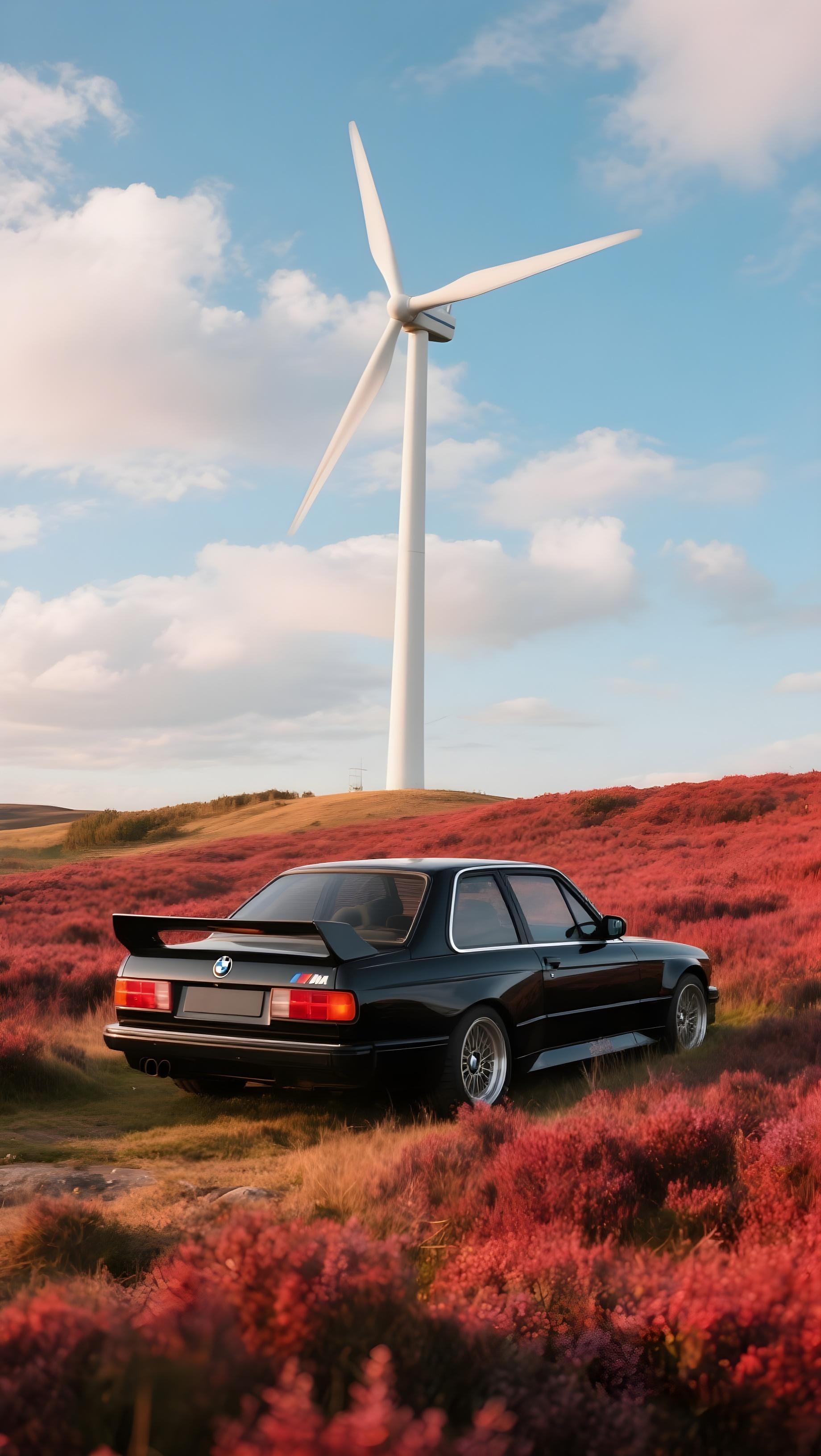 Download Windmill And Black Car wallpaper from ZeelWalls in high quality for mobile. Categories: Vehicles.