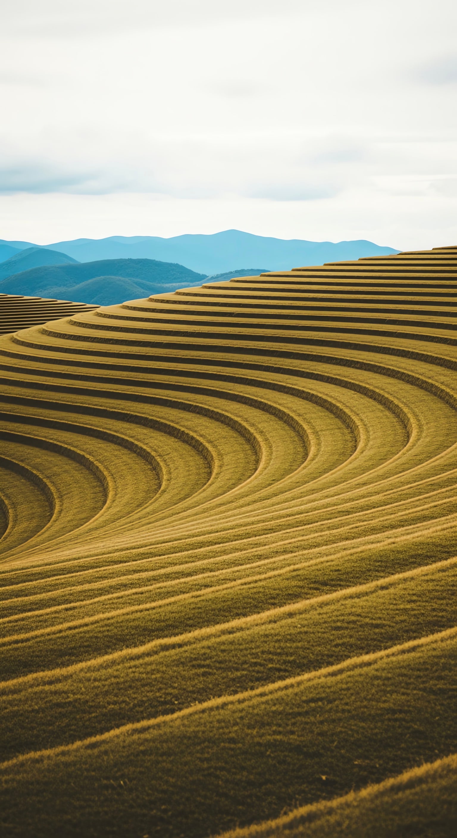 Download Grass Terraces Descending Toward Distant Hills wallpaper from ZeelWalls in high quality for mobile. Categories: Nature.